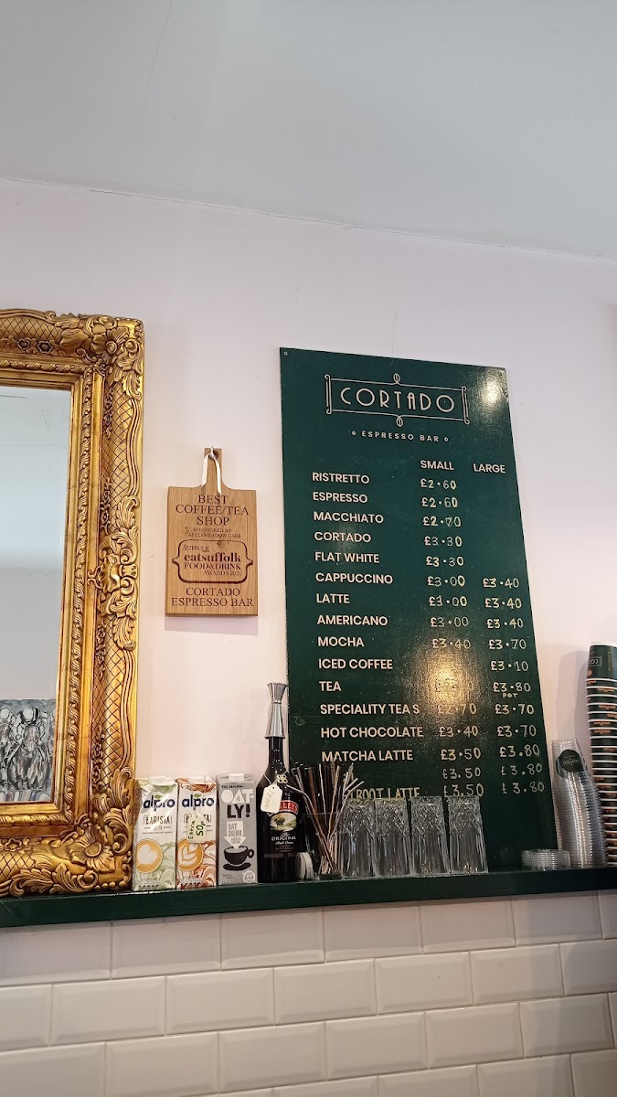 Welcome to Cortado Espresso Bar, a charming gem located at 5 Exeter Rd, Newmarket. This cozy coffee shop offers a delightful selection of beverages, perfect for any coffee lover. Their menu features a variety of options including Ristretto, Espresso, Macchiato, and of course, the signature Cortado. For those seeking a creamier experience, the Flat White, Cappuccino, and Latte are sure to please. Don't miss out on their Mocha or refreshing Iced Coffee, priced at just £3.10.
